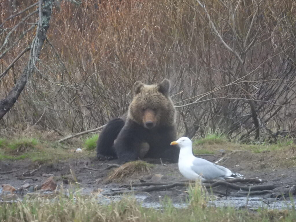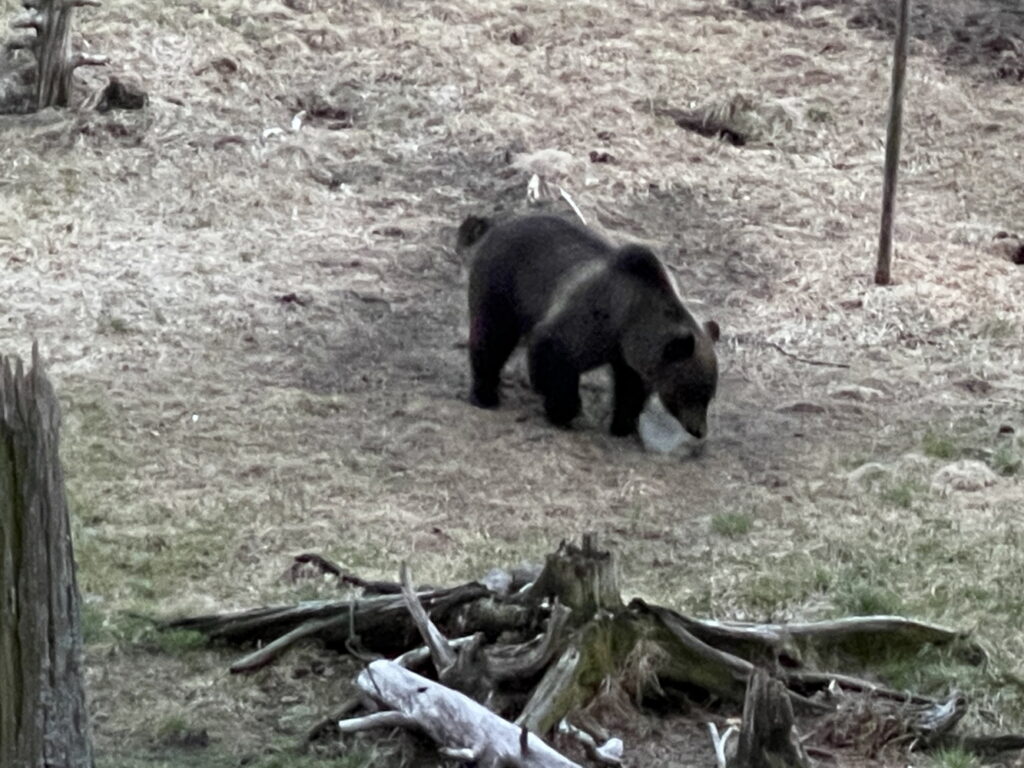 The owner, Eero Kortelainen, hides pieces of fish and meat up in trees, under rocks and elsewhere along the lake shore. The goal is to stay awake all night to see the mammals come to eat. It was amazing to see a Wolverine, then two Brown (i.e., Grizzly) Bear, and finally a Gray Wolf in the course of the night.