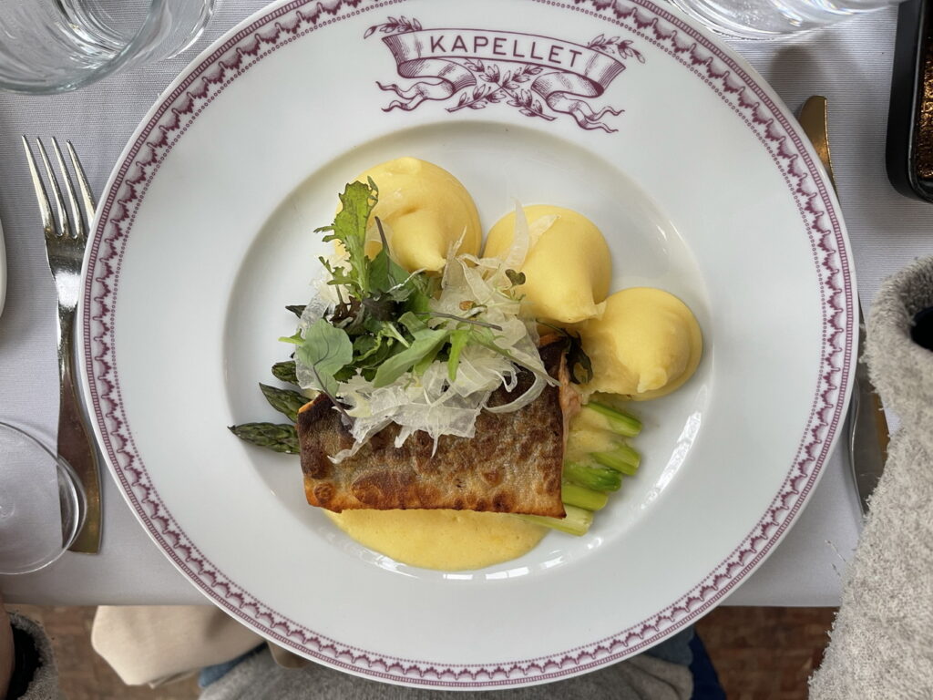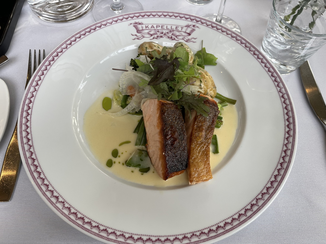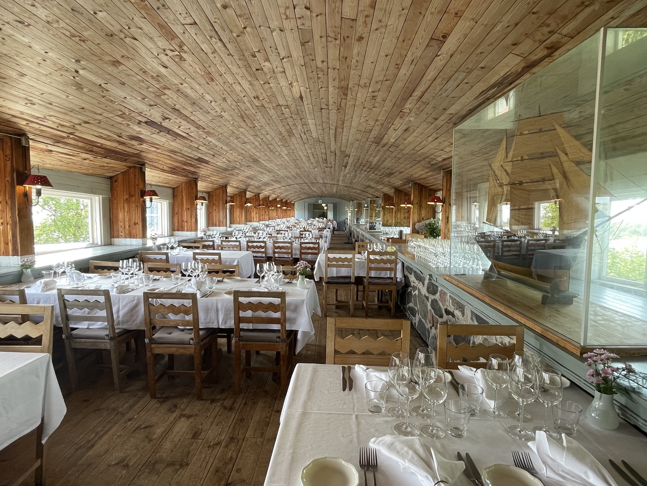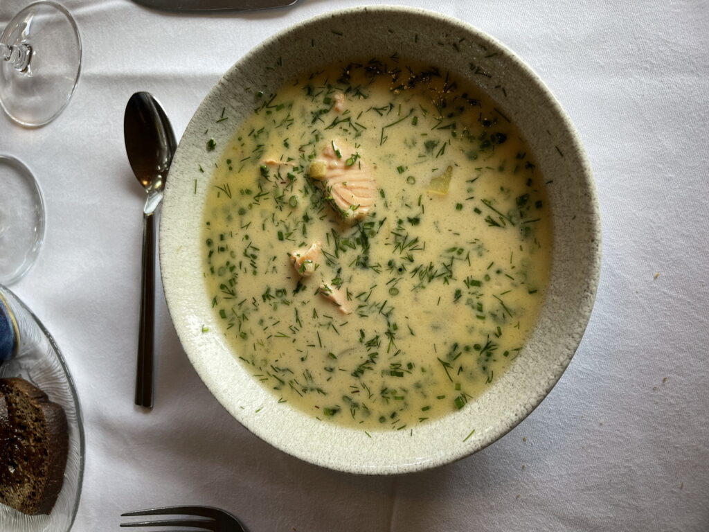 On our last night, we had a classic Helsinki experience. We took a small ferry to Särkää Island, one of many that are part of Helsinki. The Ravintola (restaurant) Särkäänlinna celebrated its 100th anniversary in 2024! The first course of our meal was the Finnish classic Salmon Soup. We’d had it elsewhere too, but this was the best one.